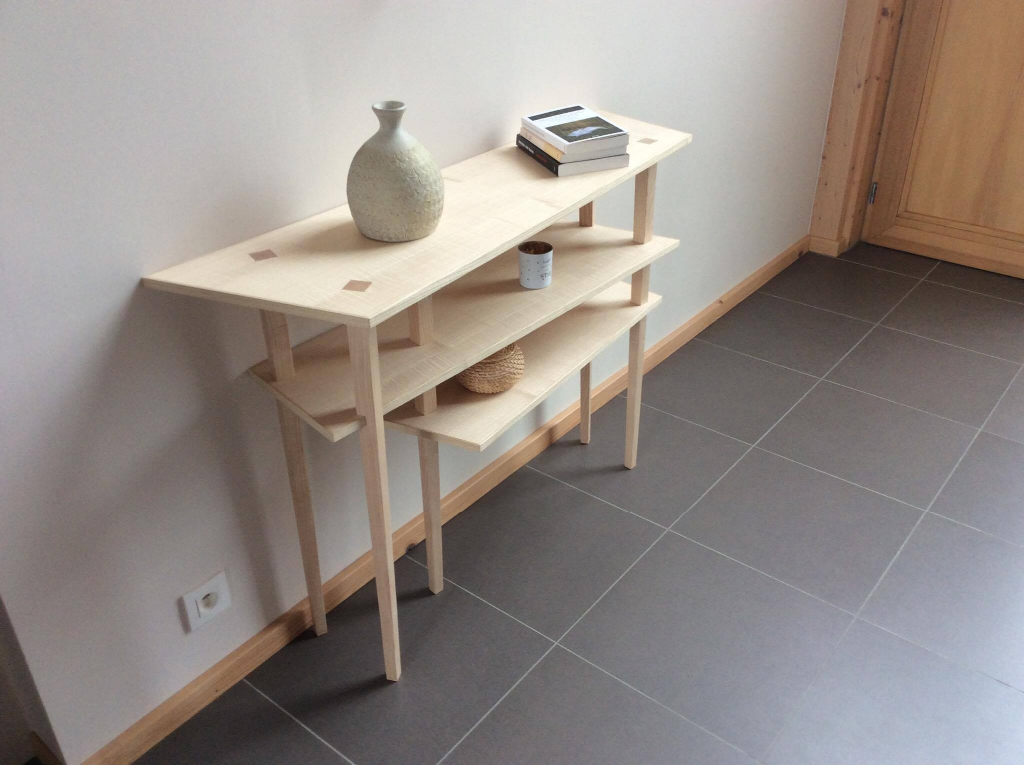 Console, table basse… Retour aux réalisations consoles, petites tables, banc d’intérieur déclinables.